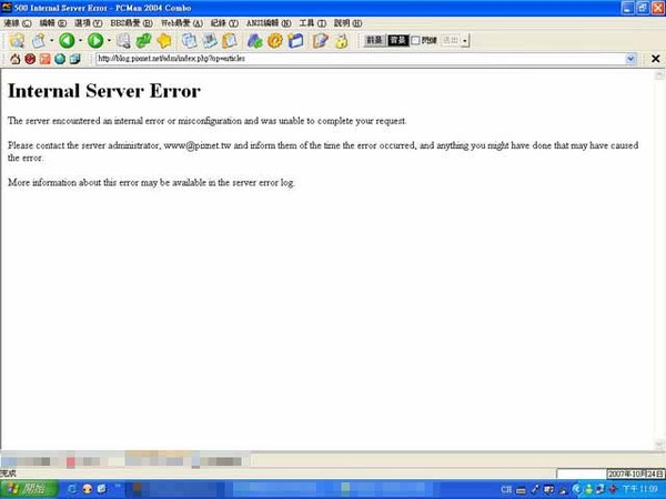 晚上只要一開pixnet,都會出現Internal Server Error之類的錯誤orz