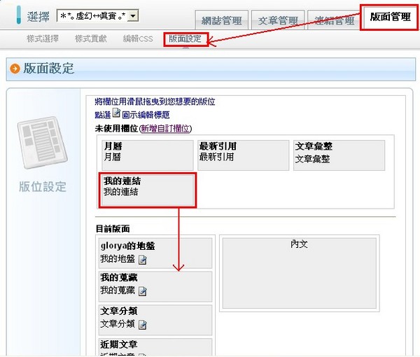 如果要顯示在網誌上,記得到『版面管理』→『版面設定』裡