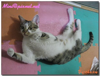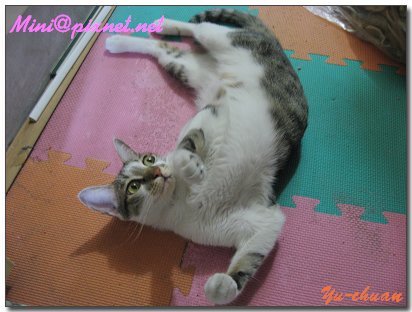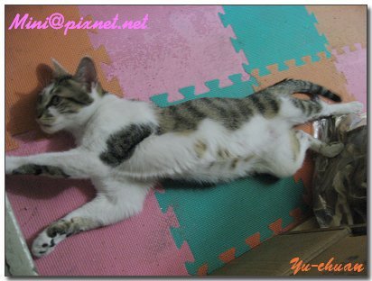 就降子大喇喇的躺在巧拼上面(都變成牠磨爪子的地方了)