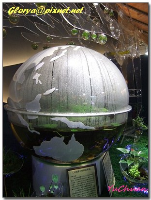 這顆陳列在「水精靈生態球造景區」的生態球,直徑1.5公尺,重約1.5公噸,