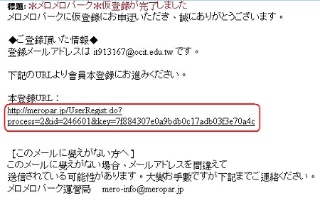 收到的email內容如下,