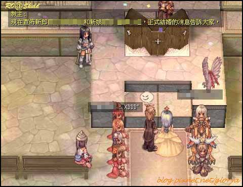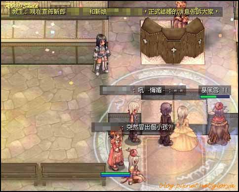 因為我跟芙的碎碎唸,所以一堆人被我們慫恿去結婚。瓜跟葉月的婚禮。最多人參加的吧XD還拍照留念。話說........阿梅很不想要這個親家嗎?擋在新郎新娘中間耶XD紫紫跟黑心的婚禮。猛一看以為是芙 囧